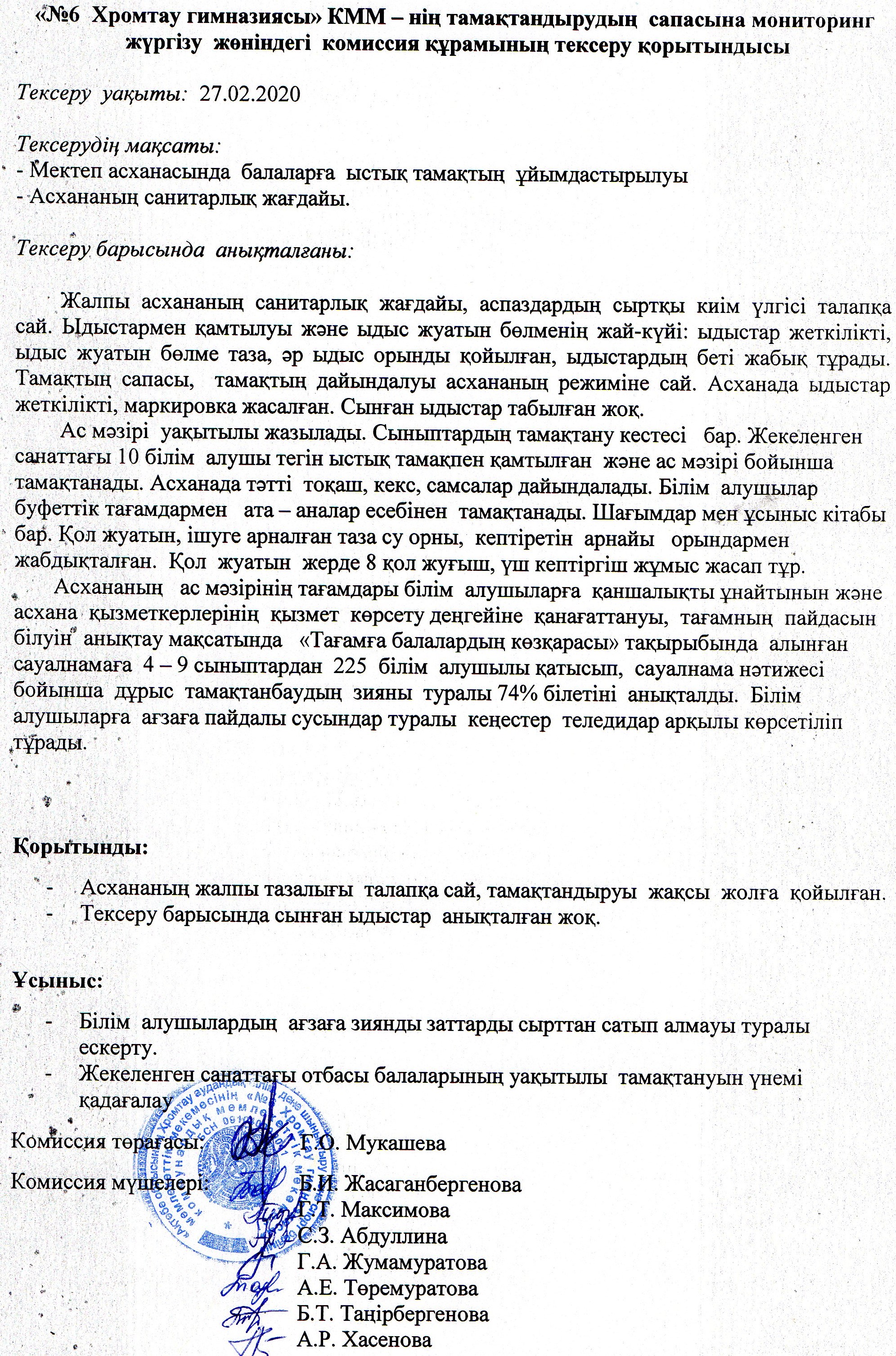 Аудандық тамақтандырудың сапасына мониторинг жүргізу сәті толығырақ
