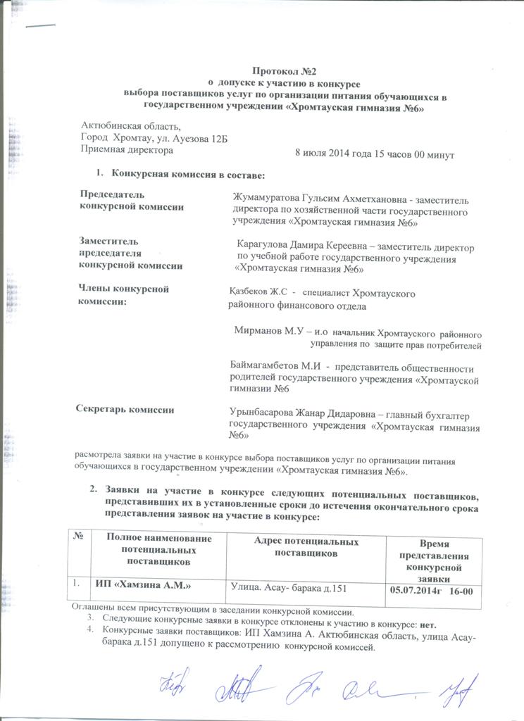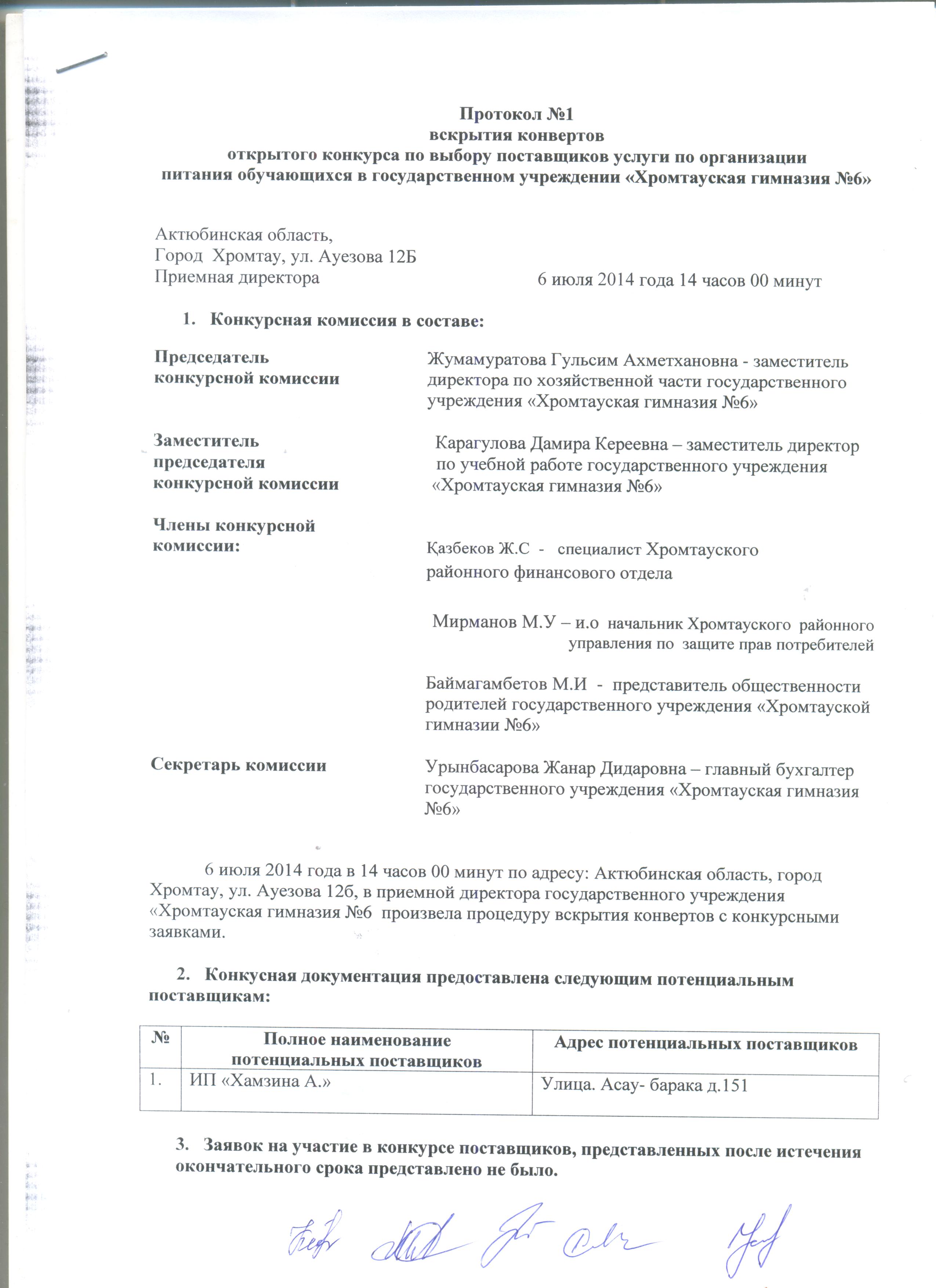 Протокол о допуске к участию в конкурсе 1 стр 2 стр