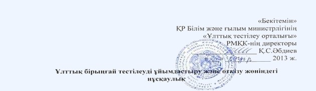 3. ҰБТ-ны ұйымдастыру және өткізу бойынша жоғарыда көрсетілген тұлғалар өз қызметінде «Білім туралы», «Мемлекеттік құпиялар туралы» Қазақстан Республикасының заңдарын, Қазақстан Республикасы Білім және ғылым министрінің 2011 жылдың 5 желтоқсандағы № 506 бұйрығымен бекітілген (нормативтік құқықтық актілердің мемлекеттік тізілімінде № 7367 нөмірімен тіркелген) Ұлттық бірыңғай тестілеуді өткізу қағидаларын (бұдан әрі - Ереже), осы Нұсқаулықты және Қазақстан Республикасы Білім және ғылым министрлігінің нормативтік құқықтық актілерін басшылыққа алады. толығырақ