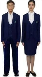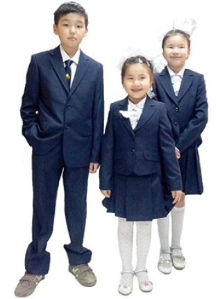 Пиджак,жилет, юбка,шалбар, классикалық жейде( қысқы уақытта: трикотаж жилет, сарафан, водолазка). Қыздарға арналған юбкасының ұзындығы тізеден 5 сантиметрден аспайды.