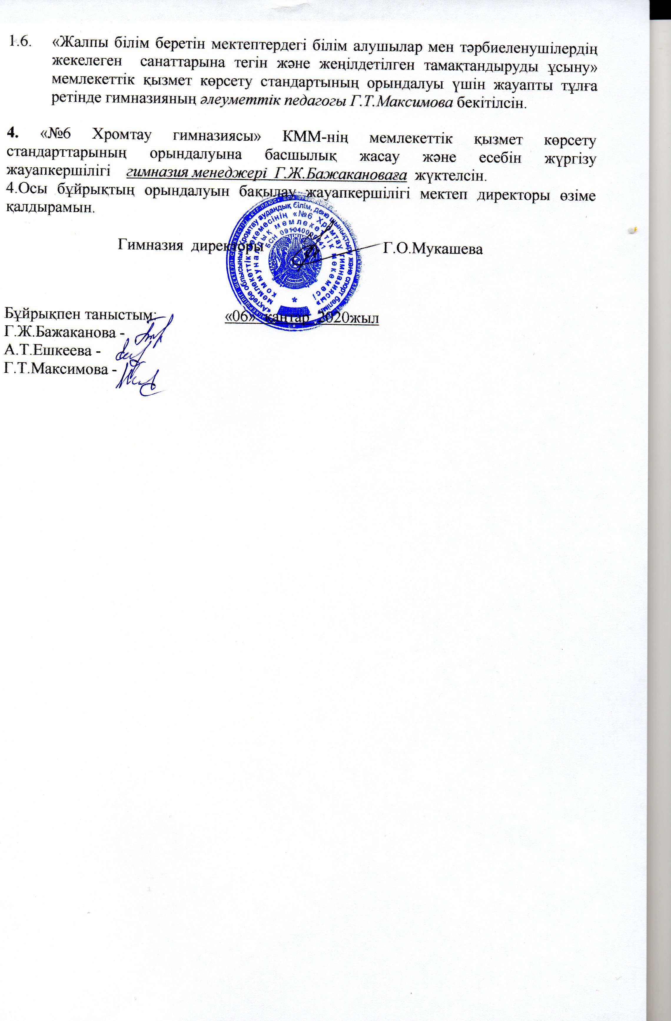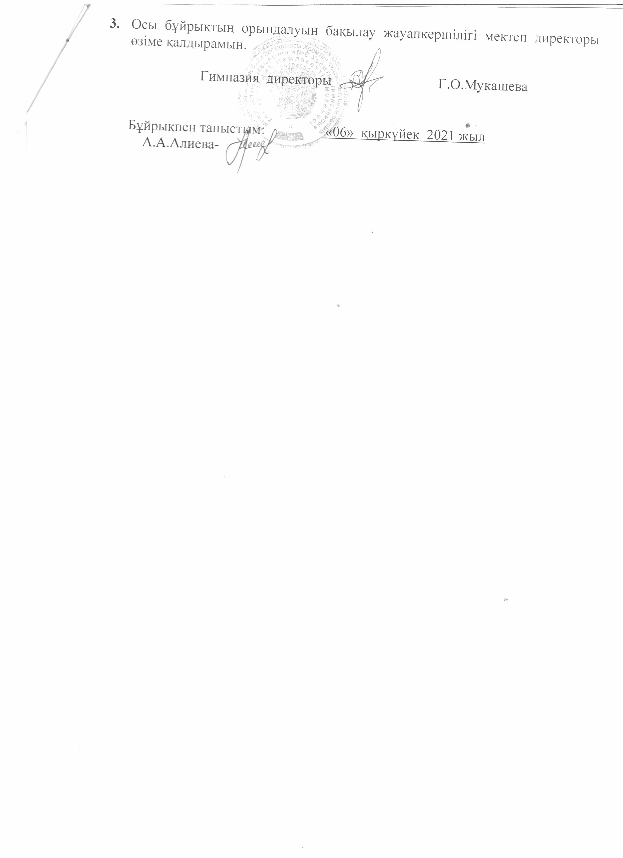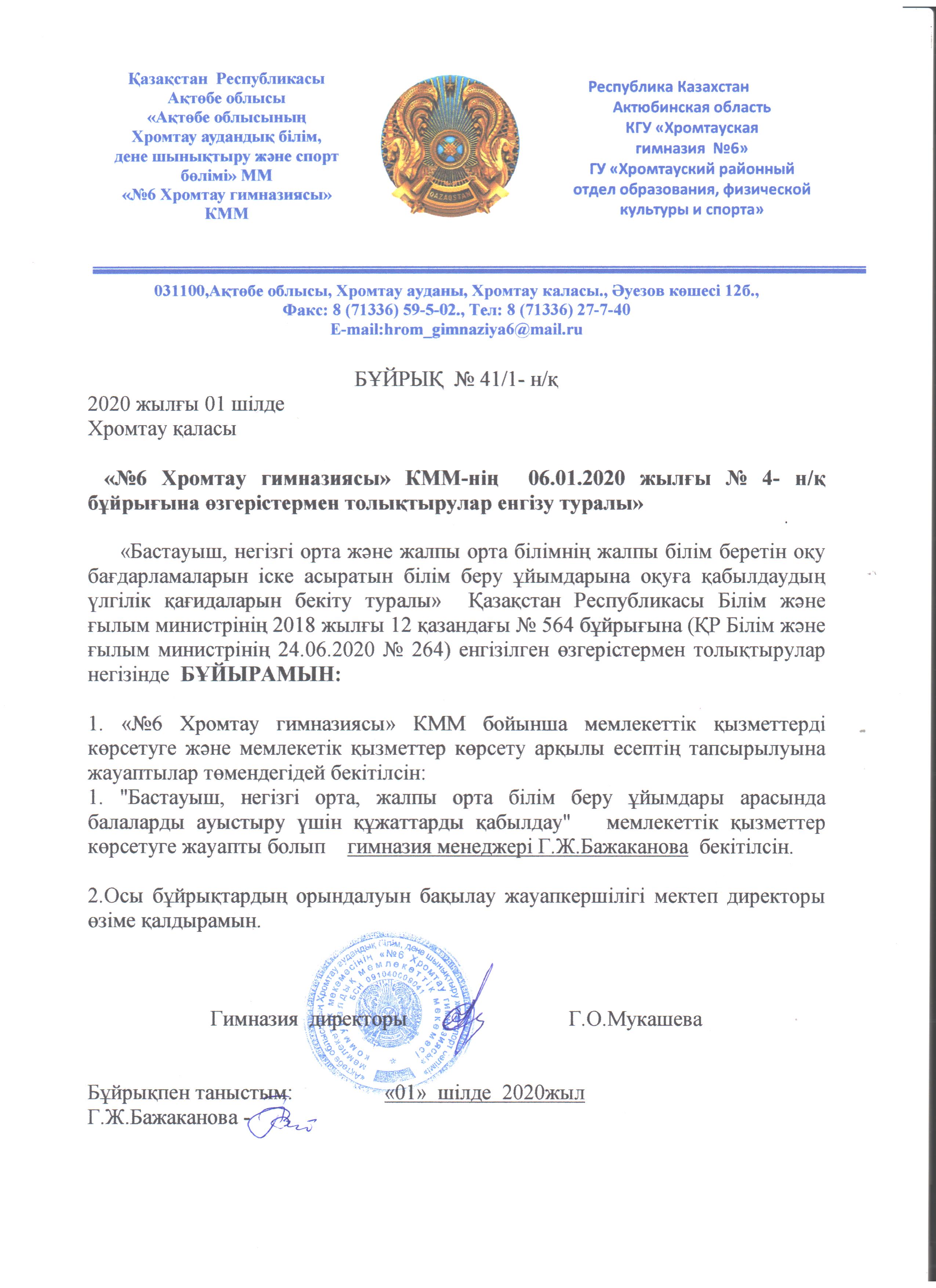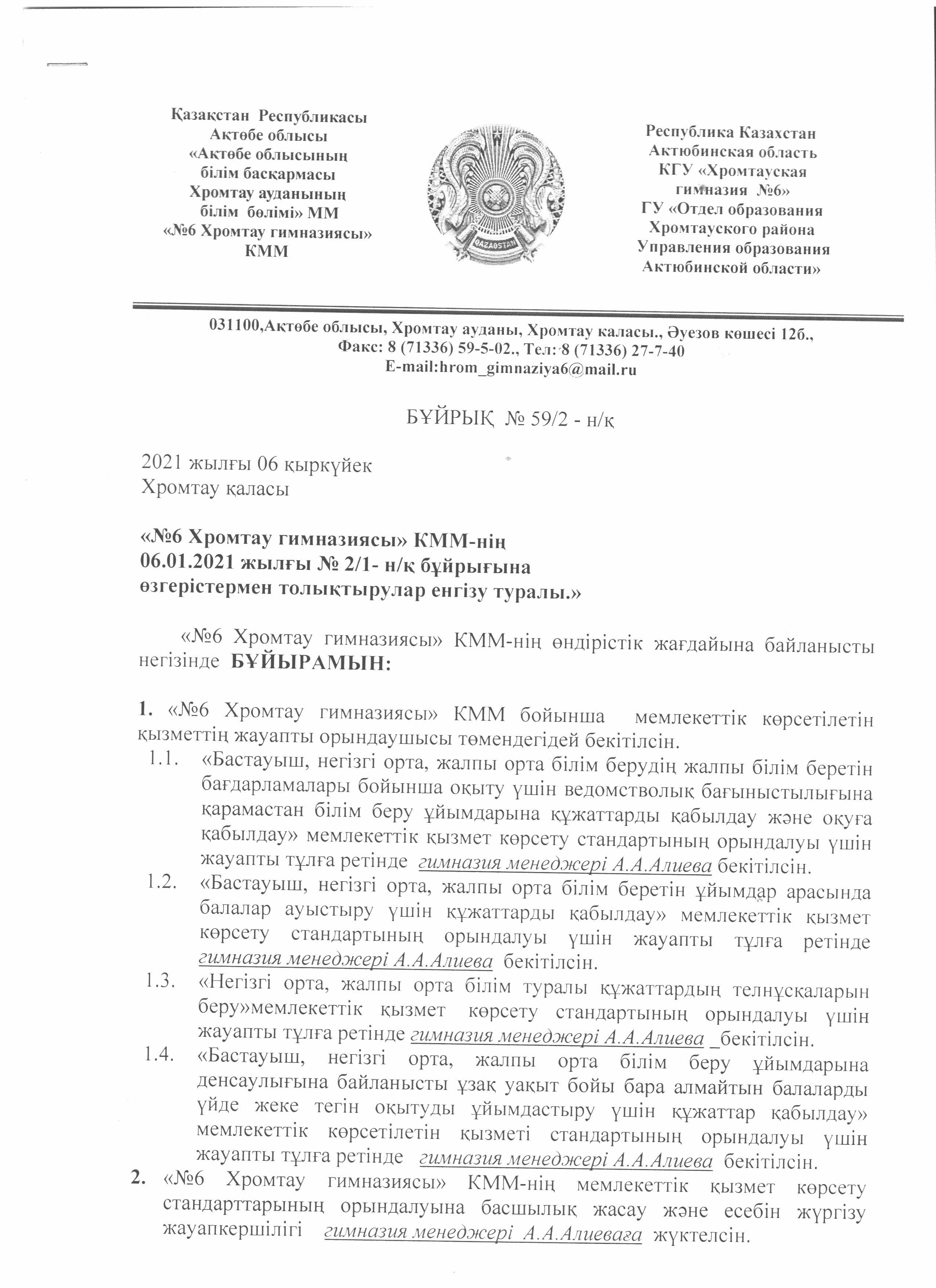 №6 Хромтау гимназиясының 2021 жылғы 6 қаңтардағы №2/1 н/қ бұйрығына өзгерістермен толықтырулар 1 стр 2 стр