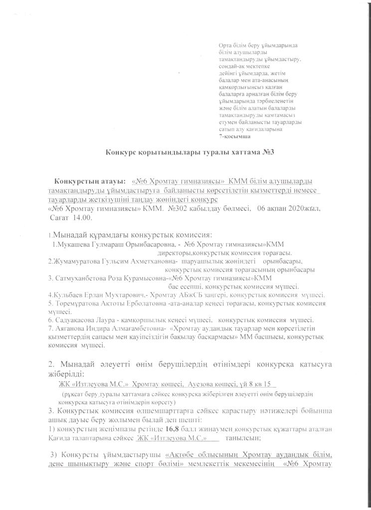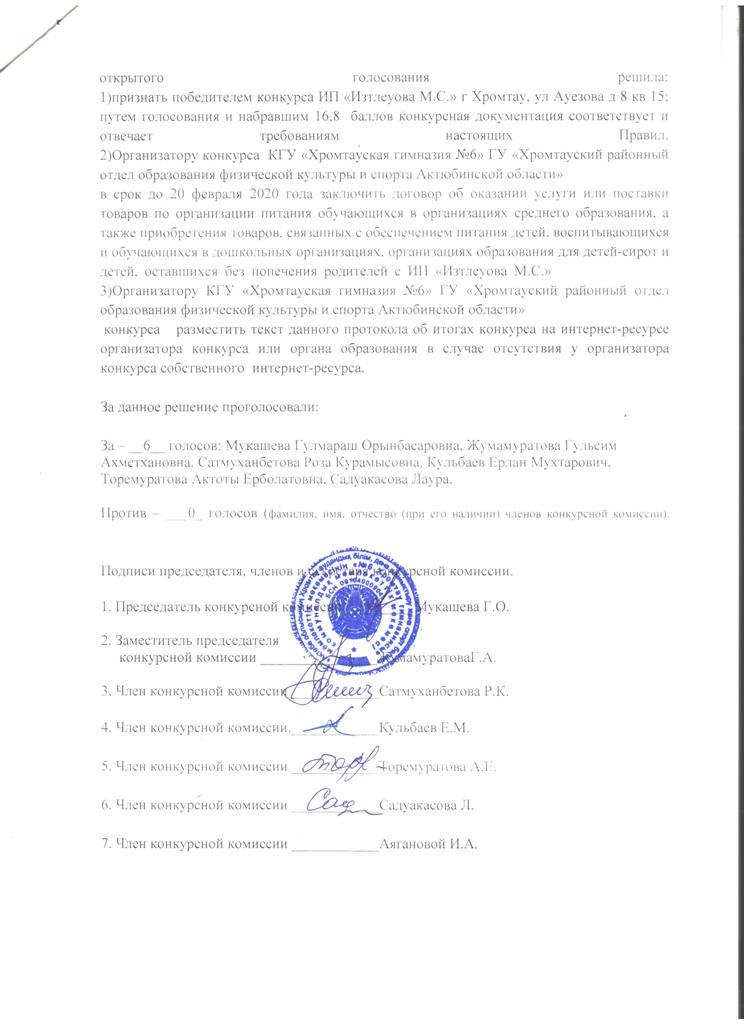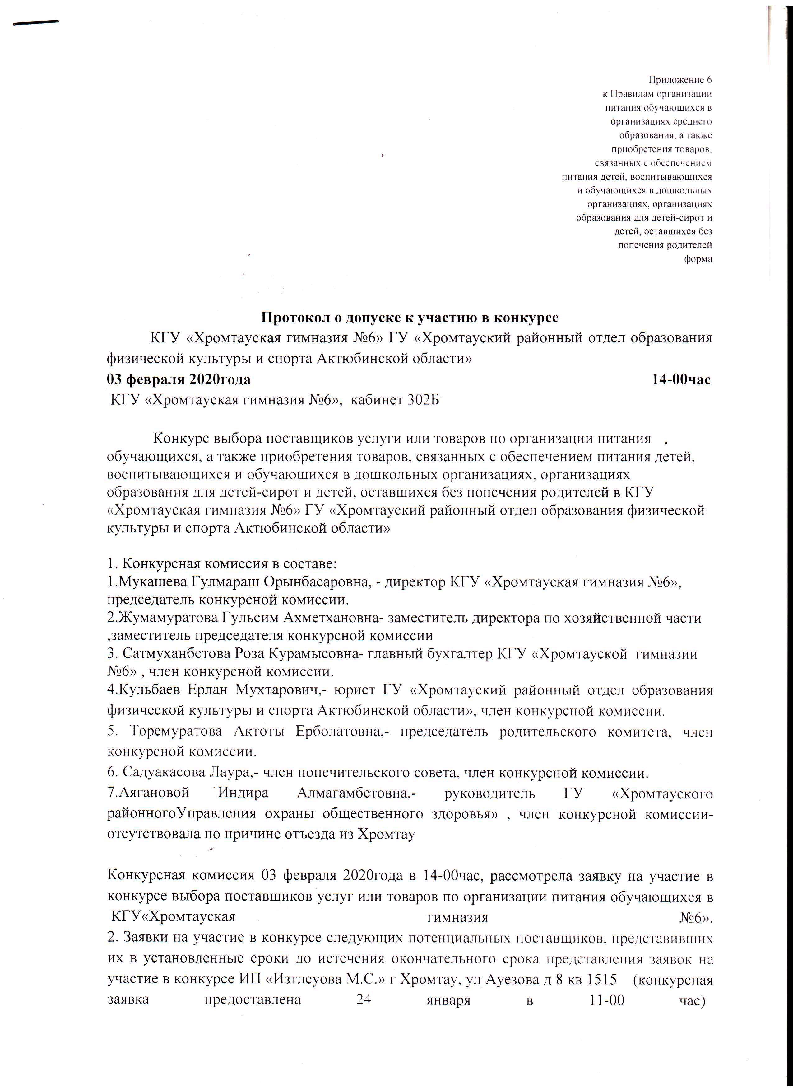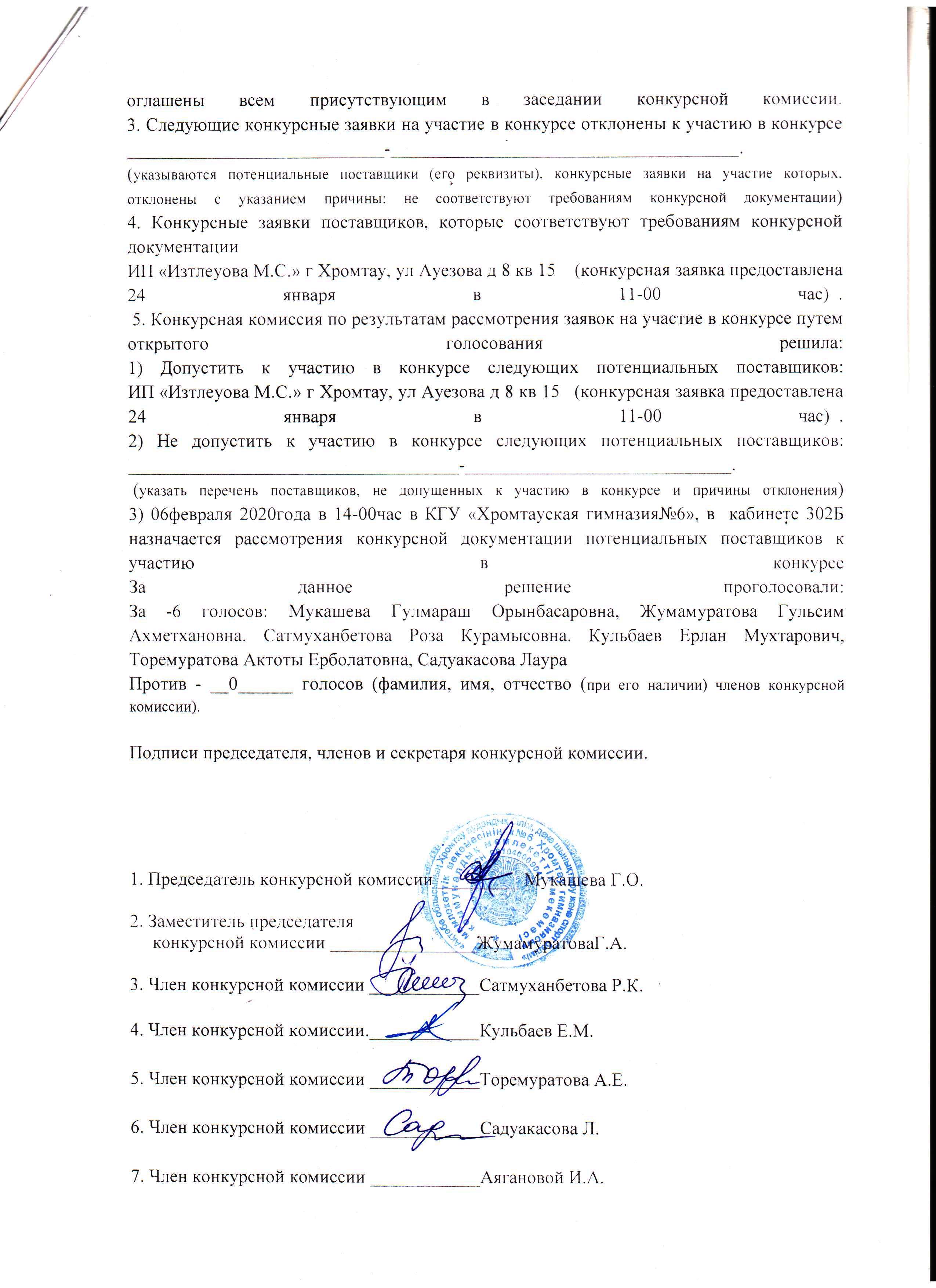 Конкурс туралы №3 Хаттама 06.02.20 1 стр 2 стр